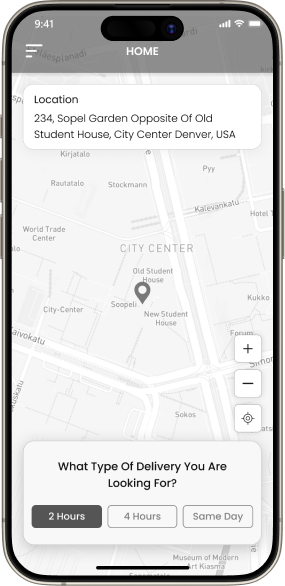The solution includes user and driver mobile applications, built using Flutter, ensuring high performance and consistency across platforms. Customers enjoy a smooth booking and tracking experience, while drivers get real-time delivery assignments, navigation, and status updates.